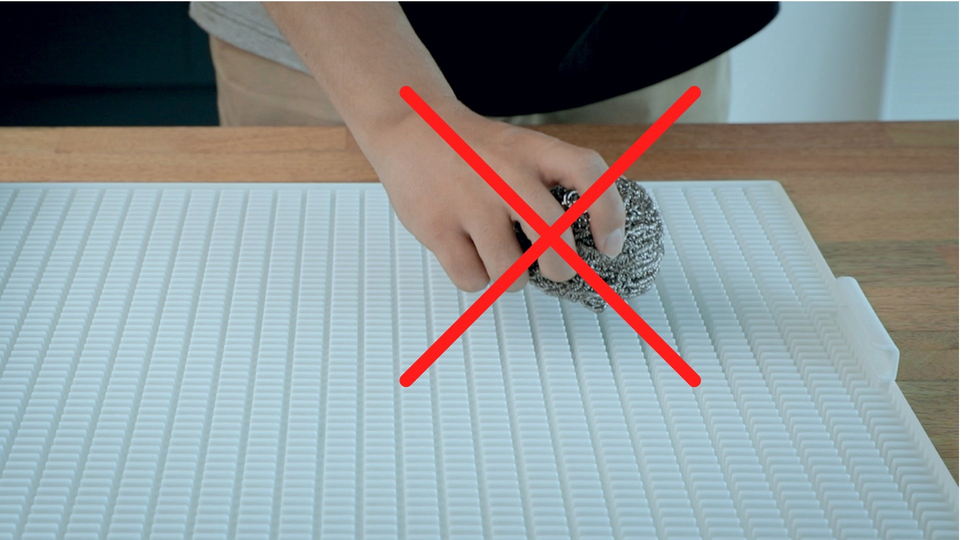 Avoid using steel scrubbers, as metal can damage the surface of the pad.